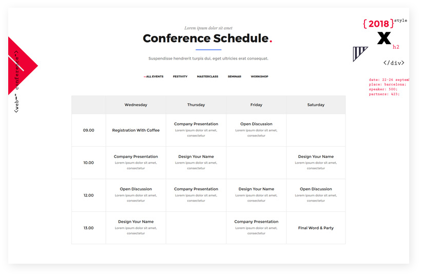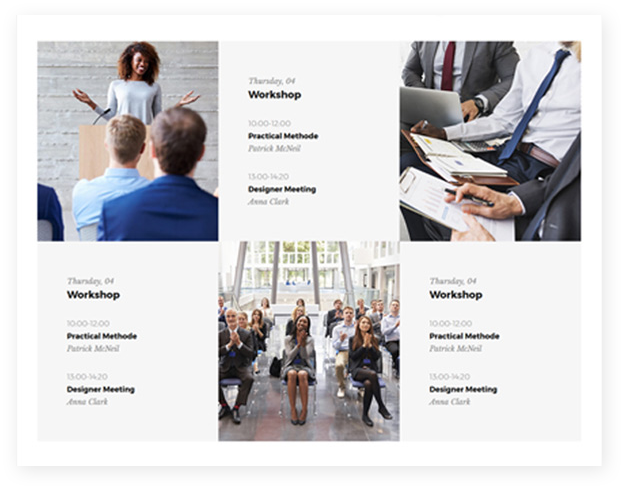 Evently comes with a stunning set of inner page templates which can be used for a variety of purposes.